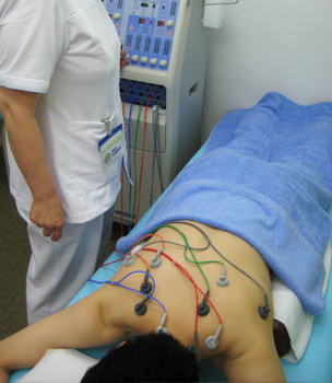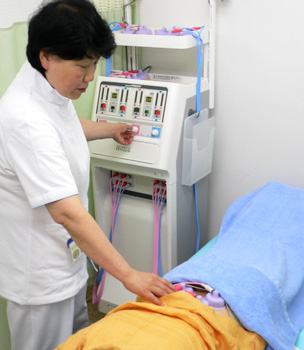 「刺さないはり治療」という発想から開発された治療法です。特殊な金属電極を用い経穴(ツボ)を刺激します。筋筋膜性の痛み、肩凝り、腰痛、関節痛などの症状に効果を発揮します。